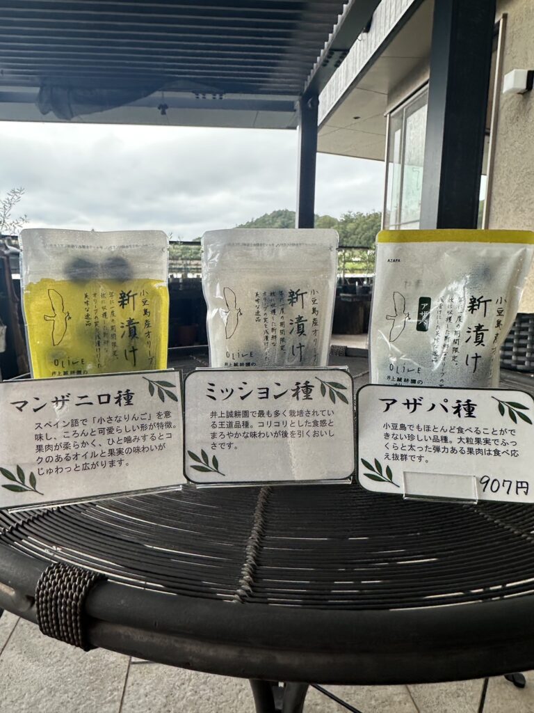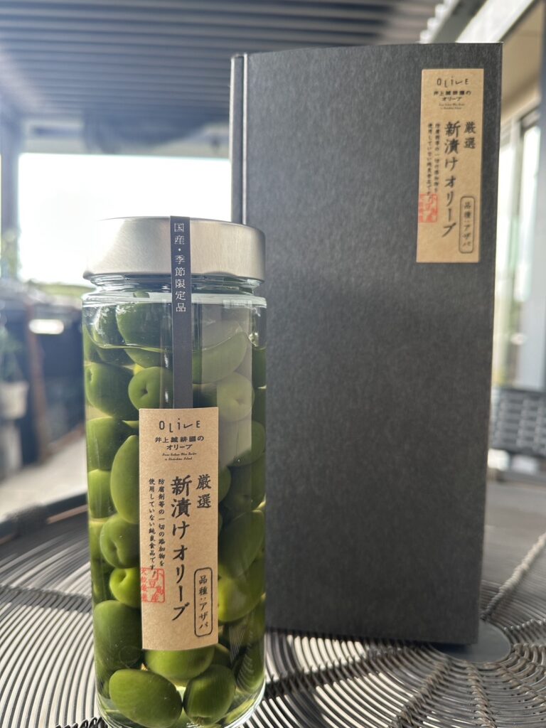 井上誠耕園のショップマザーズでは3種のオリーブの新漬けを販売中!